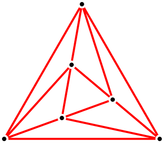 | 3. Two vertices are on opposite sides of P; the path between them passes through a vertex on P: | ![]() |