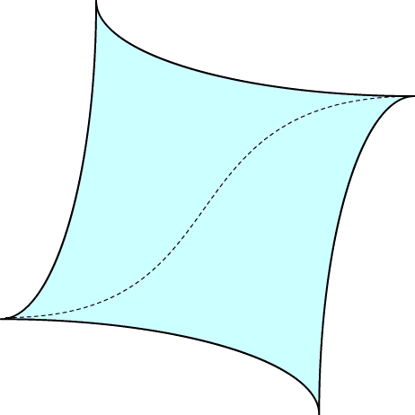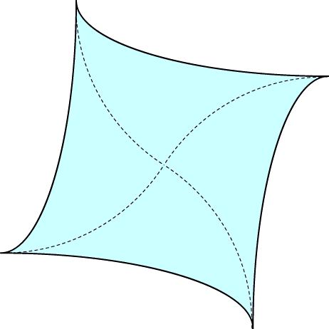 Obviously we can define triangulations in exactly the same way. Unfortunately, to triangulate splinegons we may need to increase the degree. Any diagonal in the following splinegon quadrilateral, formed from four arcs of an ellipse, has degree at least three.